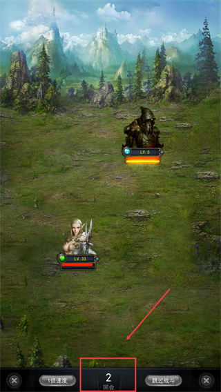 1、战斗中需对阵【LV-5】的敌方单位,己方【LV-33】英雄战力占优,可通过调整战斗速度或跳过战斗来推进流程。