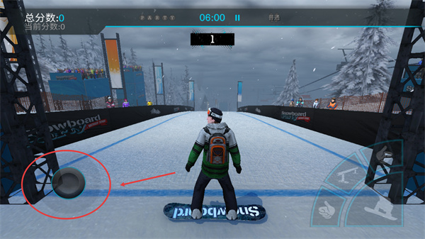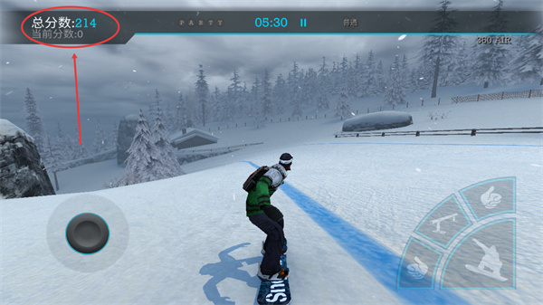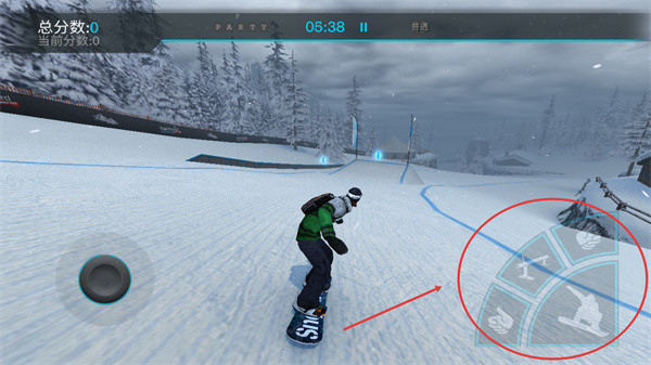 3、滑行过程中,可点击右侧的动作按钮施展特技,借助赛道中的坡道触发空中动作,助力提升得分效率。