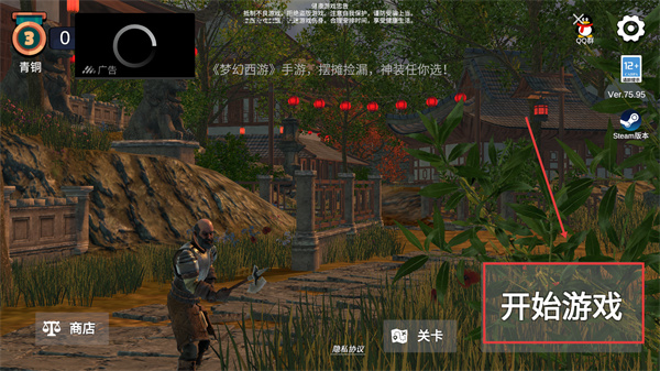 1、在初始界面点击【开始游戏】进入对局,可先通过【商店】获取基础道具提升开局优势。