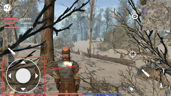 2、进入雪地场景后,利用【方向控制键】移动角色,留意【16存活】提示,规避敌方视野隐藏自身。