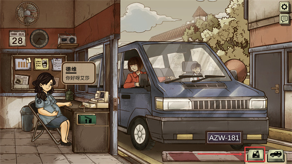 1、与【德维】完成“你好呀艾莎”的对话交互,同时留意车辆【AZW-181】,按界面提示推进流程。
