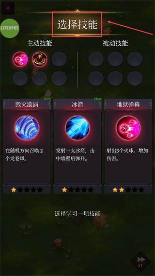 4、升级后会出现【选择技能】界面,可挑选如【毁灭漩涡】等技能。