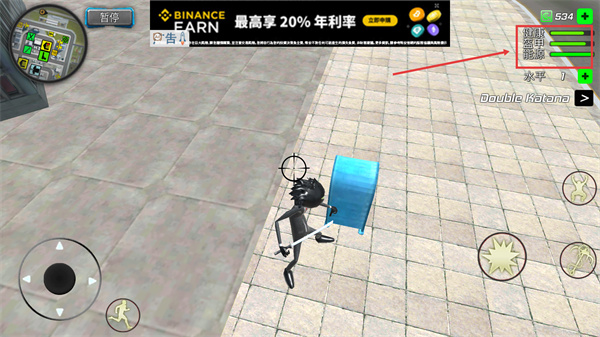 1、装备【Double-Katana】后,点击右侧对应功能键可切换近战攻击模式,提升近距离战斗的输出效率。