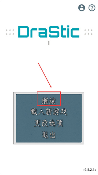 1、在【Drastic】界面中点击【继续】,可进入后续操作流程,也可选择【载入新游戏】开启新进程。
