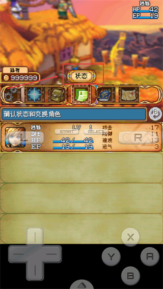 4、打开【状态】界面可查看角色的【HP-42】【EP-19】等属性,及时关注状态确保冒险续航。