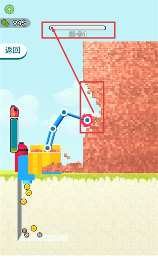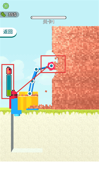 1、以拆墙作业为核心玩法,操控铲斗机械对各类建筑实施精准破坏,凭借机械的强悍性能瓦解墙体结构,收获满满的解压体验。