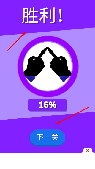 3、出现胜利提示后,可查看当前进度,点击下方的下一关按钮,即可进入下一个游戏关卡继续挑战。